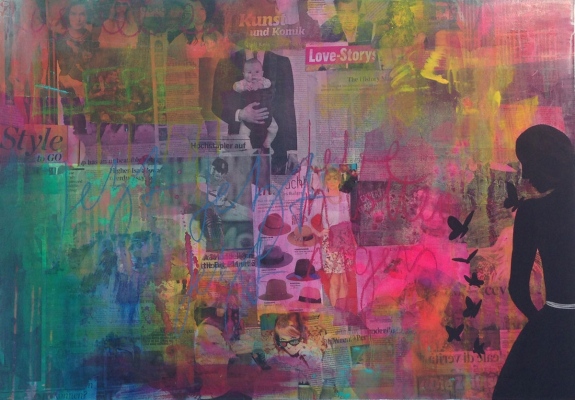 "Mut" Acryl-Collage auf Leinwand, 100 x 100 cm