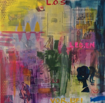 "Leben" Acryl-Collage auf Leinwand, 80 x 80 cm
